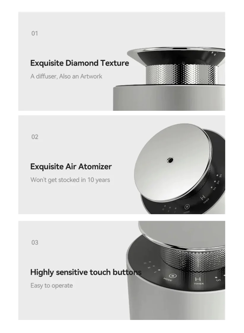 Embrace the art of fine fragrance with Vibeful Go, the ultimate aroma diffuser designed for the discerning. Crafted from premium aviation aluminum, our diffuser features an elegant diamond texture and delivers up to 60 hours of your favorite scents with a single charge. With three levels of concentration, intelligent control, and a 360° fragrance experience, the Vibeful Go transforms any space into a sanctuary of aromatic bliss. Ideal for both personal and professional settings, it offers a superior alternative to traditional diffusers with its advanced two-fluid atomization system, dispersing natural essential oils safely and evenly. Indulge in the luxury of a perfectly curated ambiance with Vibeful Go.
