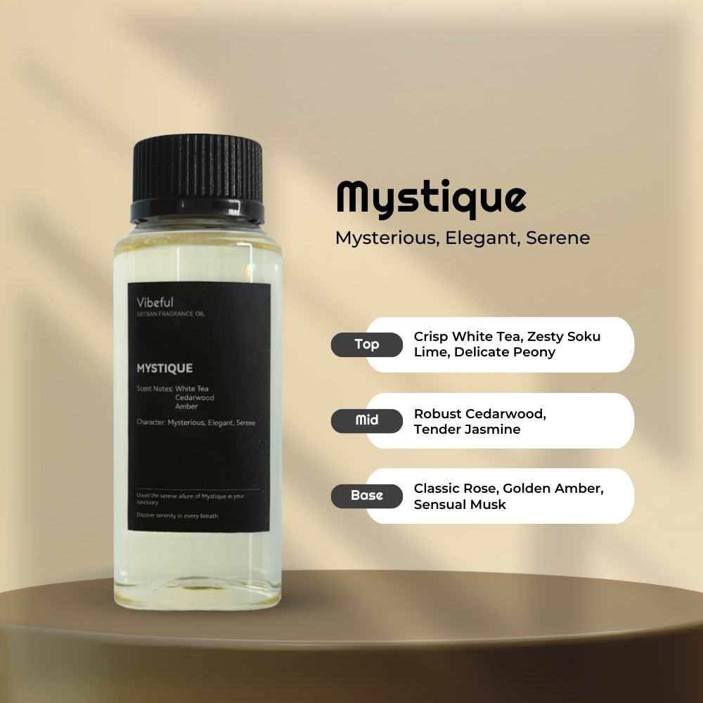 Indulge in the allure of the Mystique Diffuser Oil by Vibeful, where each note is a secret to be discovered, and each breath is a step closer to the heart of serenity.
